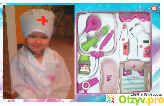 Мне сразу приглянулся набор врача- терапевта фирмы GIRL'S CLUB, поскольку у него есть халат и шапочка, которые подходят на ребенка до 10 лет.