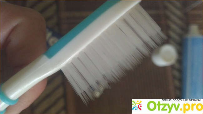 Кстати, интересно, что тюбика пасты хватает примерно столько по времени, за сколько щетка начинает приобретать такой размахренный немножко вид по всей щетине и ясно, что щетку пора менять.