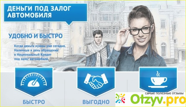 Национальный кредит - это новая компания в сфере кредитования. Главной её деятельностью является предоставление кредитных средств под залог автомобиля. Чем дороже ваш авто, тем больший займ вы можете получить.