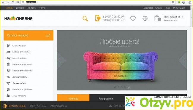 Снизу постоянная панель с контактными данными и корзиной. Она не прячется. Но самое интересное скрыто они наших глаз. Нужно прокрутить колёсико мышки и приподнять снизу дополнительную информацию: Новинки, распродажи и даже уценённые товары. Вот где можно сэкономить.