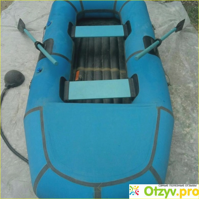Лодка оснащена вёслами, уключинами и тросом. Размеры удобные: длина лодки 2 м 60 см, ширина 1 м 20 см. В продаже модели голубого цвета.