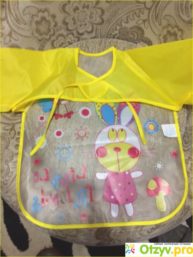 Перед вводом прикорма я задумалась, как сделать, чтобы после кормления ребенок выглядел максимально чистым, но в магазинах выбор меня не удовлетворил и я прибегла к помощи интернет-сайтов. Очень меня привлек нагрудник с рукавами, да и цвет яркий желтый понравился, а цена так вообще манящая...95 рублей, а с учетом купона продавца 31 рубль.