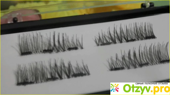 Обычно продавцы предлагают ресницы с двумя магнитами, но я нашла с тремя магнитами. Судя по отзывам это гораздо удобнее и это правда. Сами по себе ресницы очень жесткие. Суть в том, что к тонкой леске просто приклеены жесткое подобие ресниц и также приклеены маленькие магнитики с помощью которых два ряда ресниц и крепятся между собой. Идея гениальная, но не доведена до совершенства. Ресницы эти неудобные. Кроме того, что придется потратить огромное количество своего времени чтобы вообще научиться ими пользоваться так и носить их не комфортно. Как только я все такие научилась ими пользоваться (спустя три вечера) я конечно захотела их поносить, но на долго меня не хватило. У меня появился неприятный зуд на веках и напрочь пропало желание надевать эти ресницы в ближайшее время.