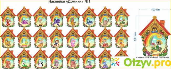 Одна наклейка формата 110х75мм и 2 – формата 75х60мм. В дополнение к комплекту вложены лист А4 со списком для группы с изображениями тех же рисунков и маленькие наклейки для поощрения детей.