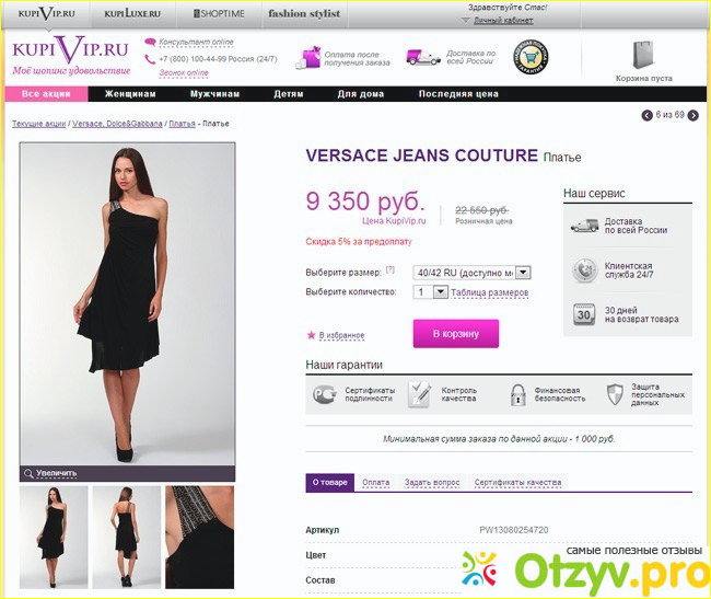 В прошлого году заказала себе тунику за 6250 рублей, дорого, конечно, но просто очень понравилась! Как обыденно зарегистрировалась в личном кабинете магазина купивип, товар положила в корзину.