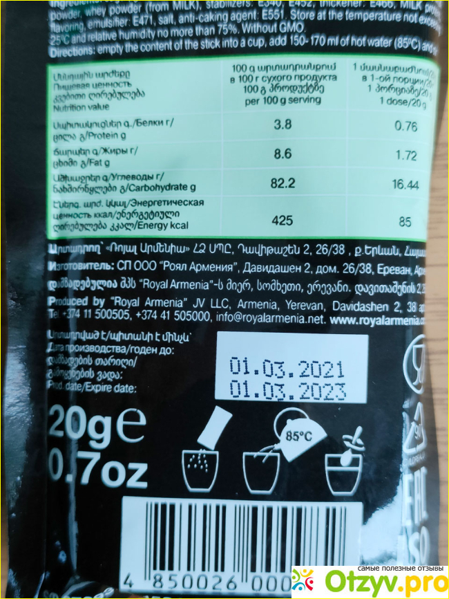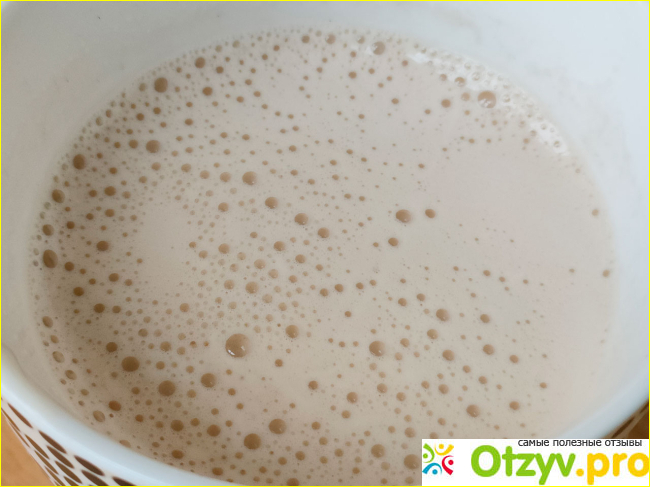 От кипятка не сворачивается и даёт большую густую пену при заваривании. Вкус насыщенный и сытный. Им легко можно перебить чувство голода.