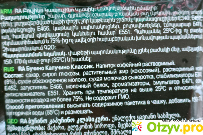 Мне лучше всего классический вариант. В пакетике сухого напитка очень много. Для разнообразия я делила его на две или три части и добавляла в кофе ил цикорию. Получается как 3 в 1, тоже замечательно, новый насыщенный вкус.