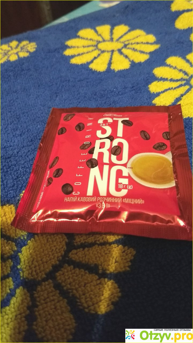 Кофейный напиток Strong 3 в 1 Мицный торговой марки "Своя Линия" покупаю периодически в супермаркете АТБ. Стоит он недорого, вкус средний, не сказать, что потрясающий, но пить можно если не сильно разбавлять.