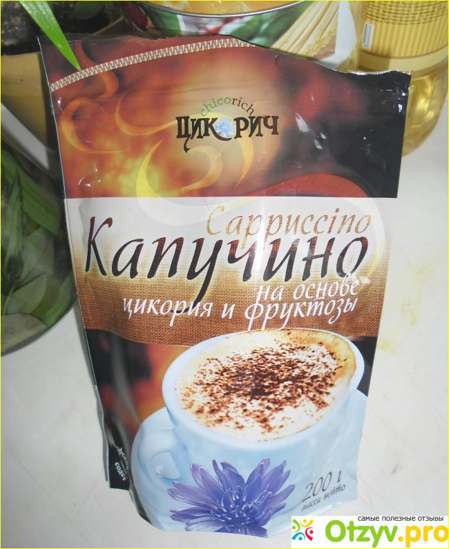 Но вот как-то раз муж мне вот какую штуку купил - напиток на основе цикория и фруктозы Цикорич "Капучино", он подумал, что какая разница какой цикорий брать, вдруг этот вкуснее, да и формат правда необычный, если бы сама пошла в магазин, то тоже наверное не удержалась и купила такой напиток.