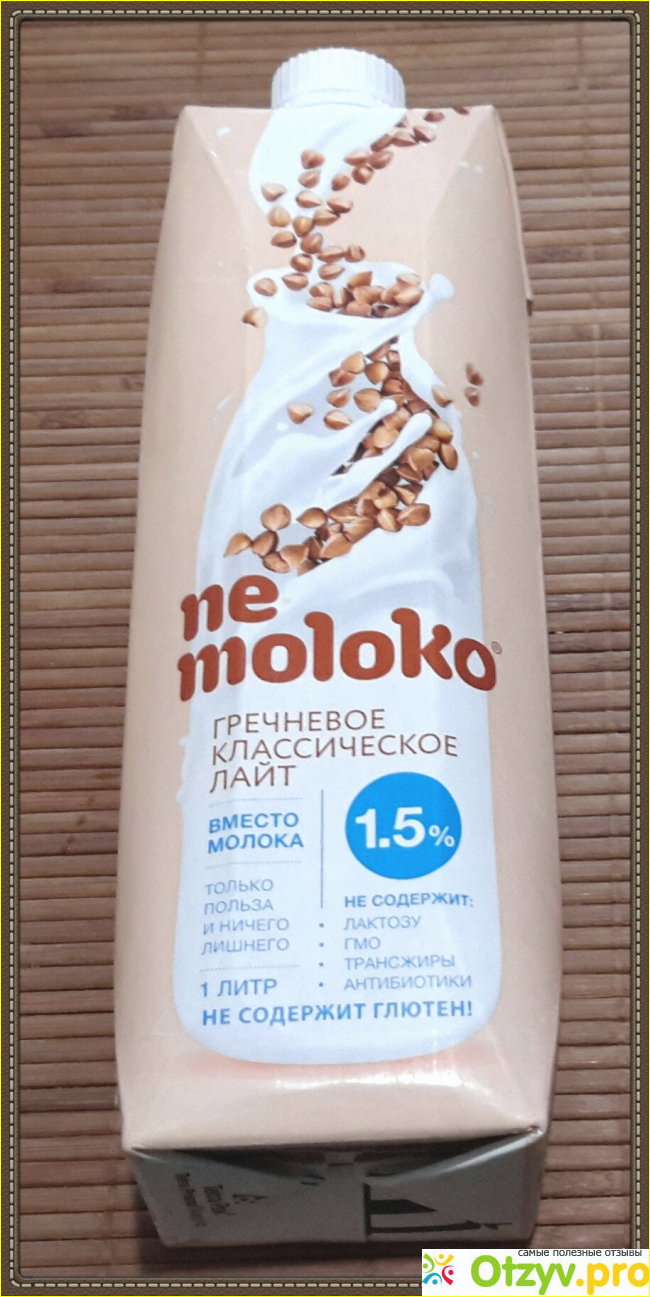 Здесь можно ознакомиться и с составом этого напитка. И он отличается от молока, прежде всего, тем, что в нём не содержится никакой лактозы и нет сои. В нём нет никаких генно модифицированных организмов, транс жиров и нет антибиотиков. Но зато есть много витаминов, углеводов, и полезных жиров. И так как он изготовлен на натуральном растительном сырье, из 100 процентной гречихи, то богат клетчаткой и белком.