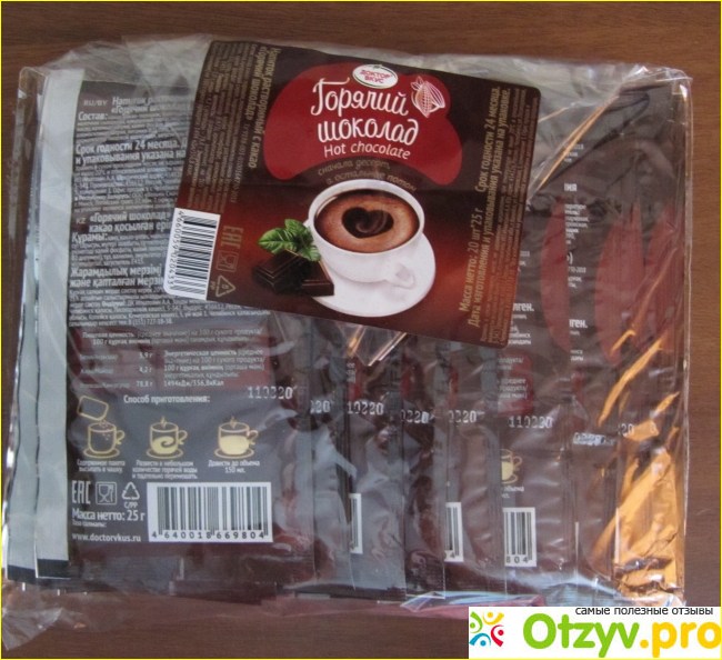 Получается чуть больше 4,5 рублей за чашку горячего шоколада. "Весьма недурно" - подумала я, положив упаковку в свою корзинку.