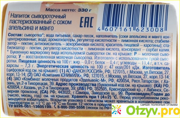 Ну а данный напиток меня насторожил тем, что в состав по-мимо сыворотки входит еще сок манго и апельсина и честно сказать, я даже представить не могла как эти совершенно разные напитки могут считаться.