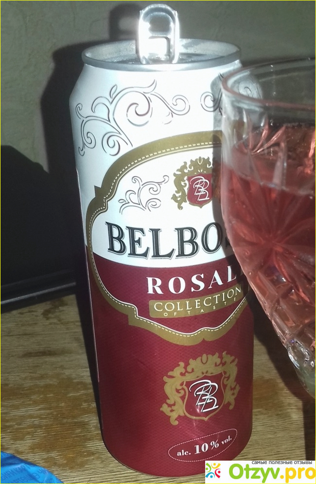 От белого винного напитка, напиток "Бельбоско Розали" отличается только цветом баночки, ну и цветом самого напитка. Конечно, вкусом тоже отличается, но я пока бы хотела о внешних признаках написать. Как я уже и говорила, что купила я газированный винный напиток ароматизированный сладкий "Бельбоско Розали" в жестяной баночке, совершенно обычной, в которую разливаются и другие напитки алкогольные и не алкогольные. Оттенок у нее следующий - половина баночки имеет белый цвет, а вторая половина темно-розовый, это становится понятно потом по цвету винного напитка.