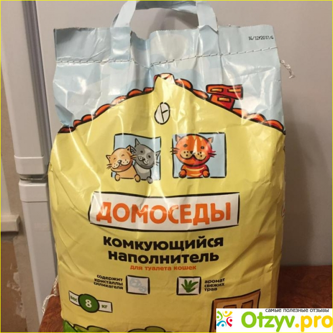 Комкующиеся наполнители трудно назвать моими фаворитами, так как они зачастую очень сильно рассыпаются, при этом комкование происходит далеко не всегда. Полно производителей, указывающих эту характеристику для красного словца. Наполнитель Домоседы брала на пробу. 8 кг продукта обошлись в 400 рублей.
