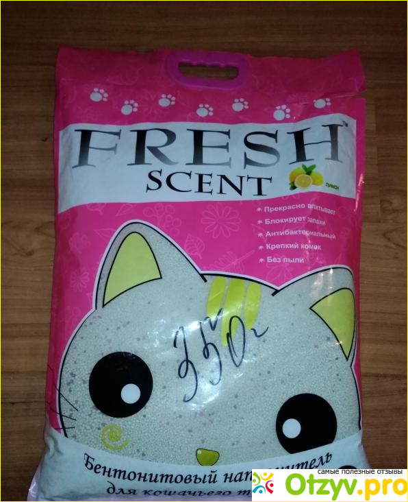 Итак, Наполнитель для кошачьего туалета FRESH scent представляет собой подобие мелкого песка. Или похож на стиральный порошок. Он бетонитовый и комкующийся. А это значит, должен давать крепкий комок, быть простым в уборке и хорошо сдерживать запахи. Кроме того, производитель предлагает ароматизацию, что призвано снизить вероятность возникновения характерного запаха мочи. Это не есть хорошо, так как кошка может чувствовать посторонний аромат и откажется пользоваться своим лотком.