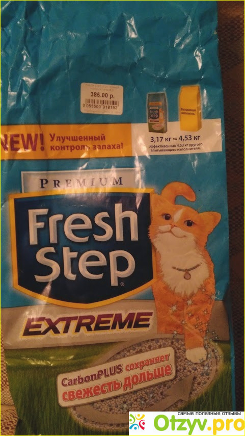 Наполнителем Fresh Step пользуемся уже несколько лет - у нас породистая кошка, невская маскарадная красавица. До этого использовали Catsan и были в принципе довольны, но наша заводчица порекомендовала Fresh Step. Сначала покупали обычный, потом перешли на усиленный вариант Extreme, так как у нас периодически бывают котята, и наполнитель расходуется намного быстрее.