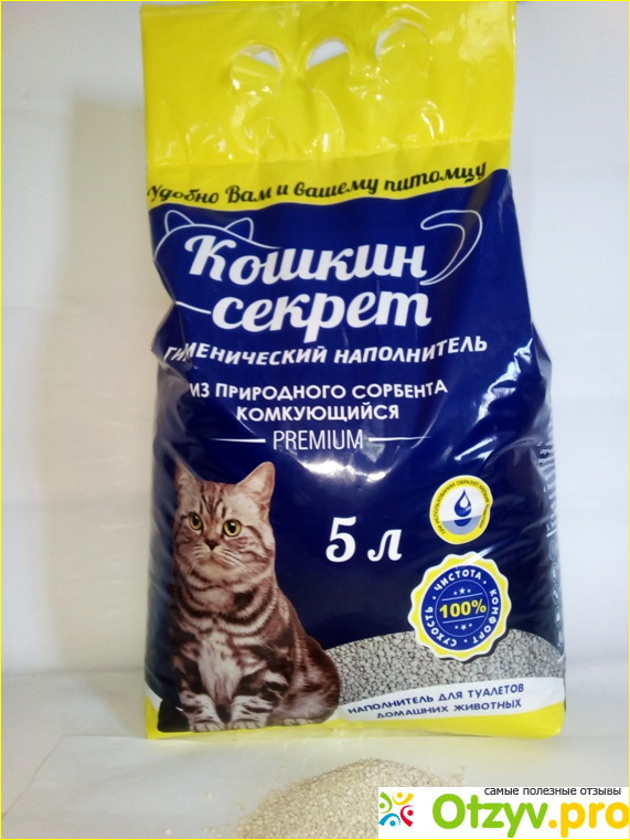 Уже давно я отдаю свое предпочтение минеральным и бетонитовым наполнителям. Так как они лучше всего впитывают жидкость, хорошо удерживают запахи и обходятся дешевле остальных. Недавно я попробовала новый вид, который комкуется под красивым названием "Кошкин секрет". Он изготавливается из природного сорбента. И упаковка в 5 литров, обходится всего в 80 рублей. Производитель обещает полное избавление от аммиачного зловонья, устранение бактерий, экономичность и качественные комочки. Крупным шрифтом на упаковке можно увидеть предупреждение о том, что не стоит выбрасывать отходы в канализацию.