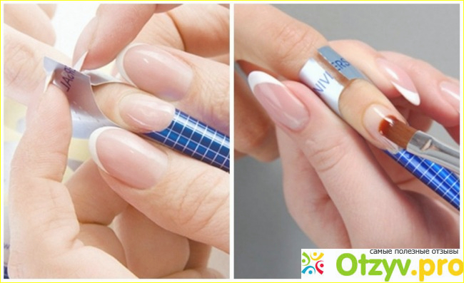 6. Мастер берет форму и подставляет к ногтевой пластине.