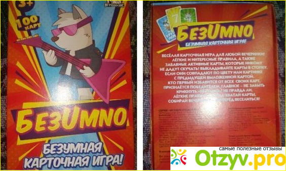 Итак, особенность игры в том, что она разбавлена такими картами действиями как:"Крутой перец" - тот, кто выкладывает эту карту, обязан сделать то, что не смогут повторить остальные. В случае если у него это получится, то он сбрасывает определенное число карт из руки."Молчун" - необходимо молчать в течении всего кона, нарушивший правило - берет карту."Звезда танцпола" - следует спеть либо потанцевать."Олень" - следующий игрок пропускает ход и берет две карты."Король вечеринок" - эта карточка кладется на карту любого цвета, при этом игрок на свое усмотрение выбирает цвет карты для следующего игрока. Цель игры, как Вы ранее могли догадаться, избавиться от всех карт в своей руке. При этом еще важно не забыть, когда у тебя остается одна карточка, необходимо крикнуть "Безумно!", то же самое следует прокричать и когда кладешь свою последнюю карту, лишь так засчитывается победа! Прикол в том, что весьма часто просто забываешь об этом, и внимательные соперники указывают тебе на это - результат, приходится добирать карты из колоды.