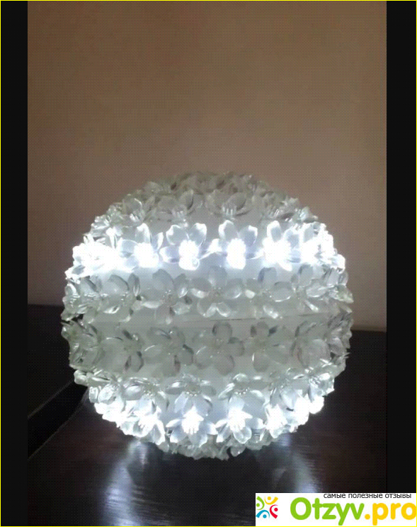 Круглые светильники всегда смотрелись очень эстетично. Его называют светильник Сакура потому как сделан он в форме шара из Цветков сакуры. Очень нежный светильник. У него только один цвет. А это белый. Поэтому если вы рассматриваете такой светильник в качестве какого-нибудь новогоднего украшения то имеете в виду что переливаться различными цветами Он точно не будет. Но несмотря на это он может стать отличным украшением помещением. Горит он в разных режимах. Это можно охарактеризовать как разную степень его морганием. То есть он может моргать сильнее и так далее с меньшей интенсивностью. Есть у него и обычный режим горения. В этом режиме он может использоваться просто в качестве настольного светильника. То есть моргать он не будет он будет гореть ровным умеренным светом. Я использую его ежедневно уже на протяжении нескольких месяцев. Но качество пожаловаться не могу потому как этот светильник выдержала Даже самый интенсивный режим работы. Я часто работаю по ночам дома поэтому мне просто необходим красивый светильник. Глядя на которой можно было бы отвлечься от работы. И привести мысли в порядок. Есть и похожие светильники которые переливаются различными цветами. Такой светильник Сакура может отлично украсить ваш интерьер.