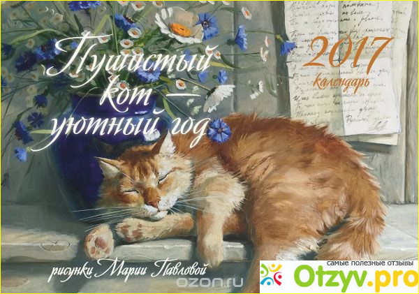В январе рыжий котик играется с ёлкой. Он же в мае гоняет ноты по подоконнику, спит на столе у самовара летом, а осенью охраняет тыквы и яблоки. Другие коты по большей части создают ему компанию. Семь из 12 картин - кошки на окнах. Прекрасно переданы характер и настроение Пушистиков. Время года угадывается.