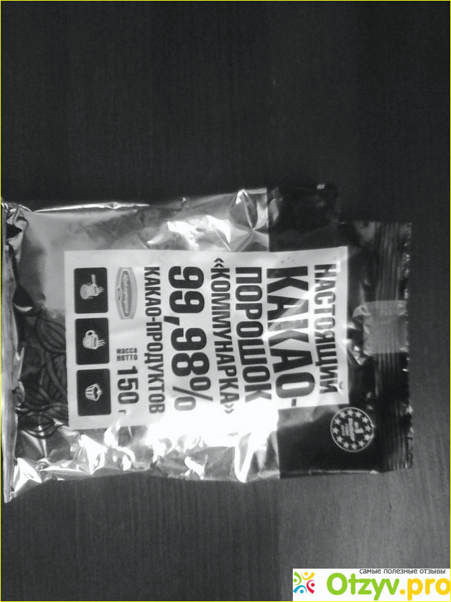 В связи с отсутствием выбора такого продукта, как какао, приобрела единственное наименование бывшее в магазине- продукт от коммунари под названием -Настоящий какао- порошок99,98% . Пачка мягкая, масса нетто продукта 150 грамм. Состав самый, что ни на есть естественный, без добавок, красителей и ешек, только какао жмых, ванилин, а также какао масло. Многие думают, что шоколадый запах дает само какао, но это не так, основой аромат и запах шоколадным продуктам придает именно како масло, вот оно то и насыщает изделия потрясающими запахами. Поэтому и купленное мной какао имело необычайный приятный аромат. Вот и колбаска у меня получилась шоколадная и, ароматная, насыщенная и вкусная. С аппетитом ели я и мои домочадцы. Данный продукт подходит для изготовления любых десертов и не только. Какао еще вкусный и полезный напиток, так любимый детьми и взрослыми. А какао от коммунарки отлично растворяется в воде. На упаковке есть даже рецепт приготовения напитка. Продукт получается с богатым и насыщенным вкусом. Очень хорошо сочетается с молоком. А в благодаря большому обьему упаковки, продукта хватает на долго, при чем цена недорогая, около 80 рублей.