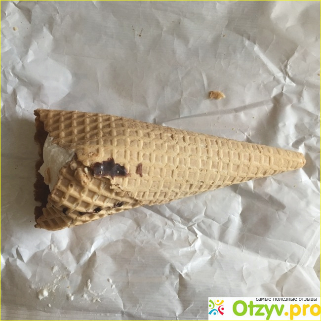 В кончике рожка скапливается небольшое количество затвердевшей шоколадной глазури. По вкусу чувствуется, что это именно глазурь, а не шоколад.