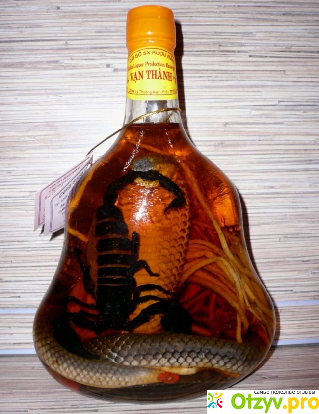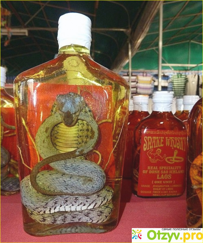 Уже дома разобрался. Что это такое я пробовал. Существует как бы два вида настоек на змеях. Один вид это обычная питьевая настойка. С нормальным, и даже приятным вкусом. Другой вид это строго лечебная настойка. Неприятный на вкус напиток. Используется как лекарство для лечения множества заболеваний. Впрочем, оба вида с лечебными свойствами. Змеиный яд при изготовлении настойки нейтрализуется спиртом. Но при этом сохраняются лечебные свойства яда. Происходит это потому, что яд имеет белковую основу. Длительное воздействие спирта на белок его полностью нейтрализует.