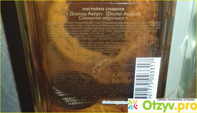 Вся информация нанесена на этикетке с оборотной стороне, данную этикетку сложно читать, так как там все мелким шрифтом написано. Оттенок у настойки оранжевый, запах ягодный, я ожидаю всегда, что такие напитки будут сильно пахнут спиртом, но эта настойка имеет умеренный алкогольный запах, больше пахнет сладкими ягодами. На вкус настойка сладкая, возможно даже больше, чем хочется, а вот по спирту она достаточно мягкий вкус имеет, пьется она очень легко. Конечно, не стоит пить много такой настойки, так как она все-таки опьяняет, если выпить много, но как правило голова от такой настойки не болит, если выпить в меру. И с похмелья от нее не болеешь, это действительно качественный продукт.