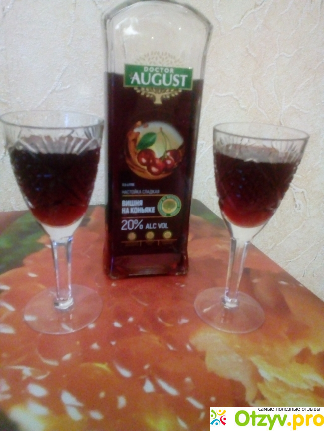 Бренд "Доктор Август" довольно популярен в нашем регионе, и выбор их продукции достаточно широк. В последние праздники сладкий напиток с вишнёвым акцентом стал для нас приоритетным. Это настойка сладкая "Вишня на коньяке".