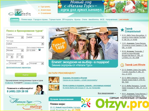 Ссылка на официальный сайт туроператора Натали Турс расположена под названием данного отзыва. Сам сайт довольно приятный на внешний вид, ничего лишнего, самое главное, что присутствует форма поиска туров. Тут также можно просто отдельно забронировать номер без полного пакета, можно также посмотреть и заказать экскурсии, что мы в конечном итоге и сделали.