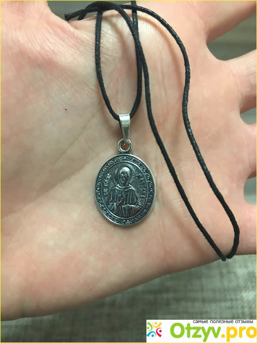 Лик святой на изделии выгравирован очень мастерски. От него будто веет спокойствием и силой. Сама форма очень красивая, нежная, интересно смотрится на теле. Хотя я не планировала демонстрировать образок окружающим, но в сильном декольте его все-таки видно. В таких случаях я переворачиваю изображение к себе, а на виду остается просто медальон. Удобно.