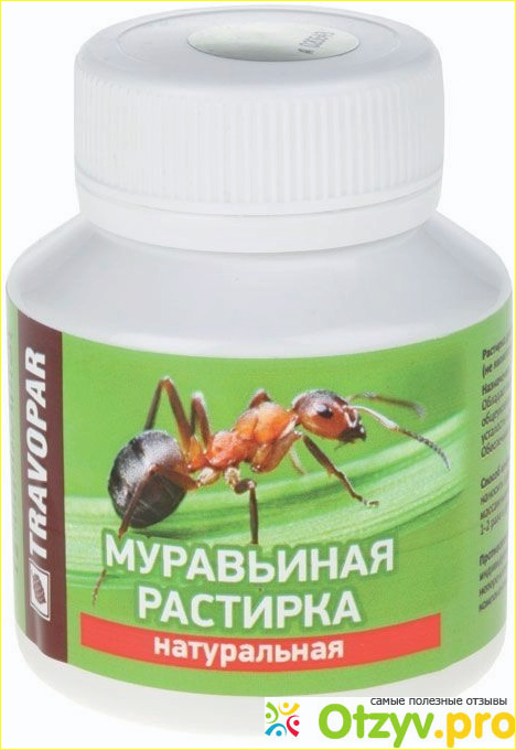 Российский производитель Travopar выпускает средство, предназначенное для наружного нанесения. Муравьиная растирка расфасована в пластиковые банки.