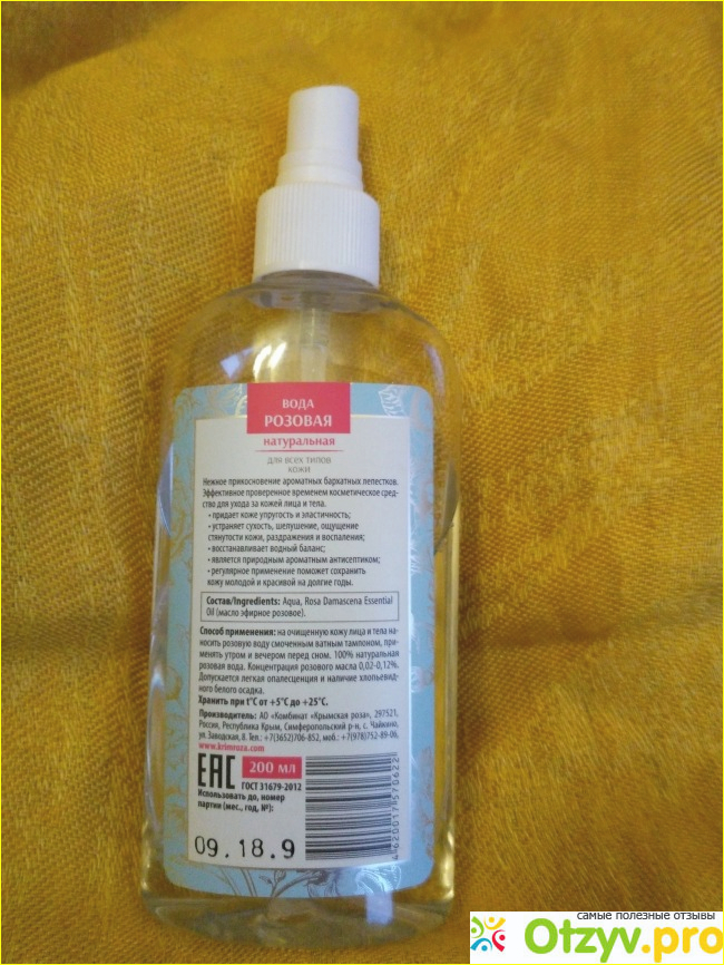 А достигается все благодаря двум компонентам, которые входят в состав этой воды- воде и эфирному маслу розы. Так что можно спокойно называть этот продукт натуральным, ведь химии и всяких добавов в этом пузырьке точно нет.
