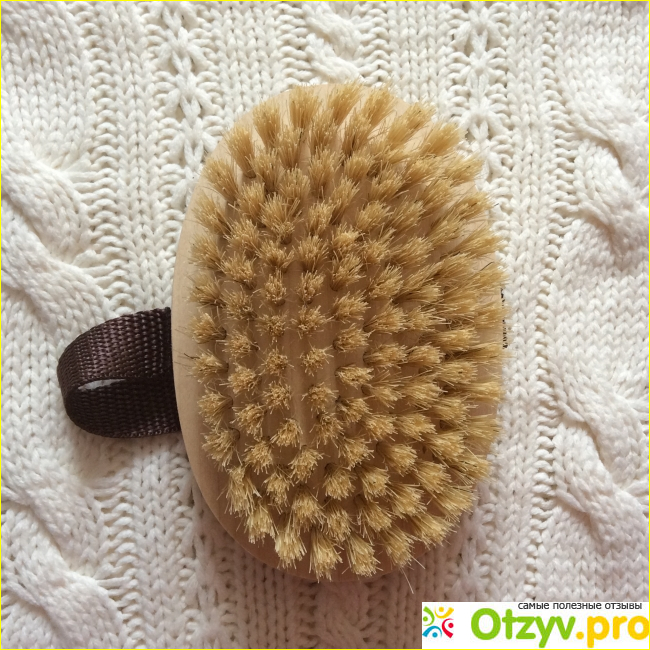 Щётка средней жёсткости, но при этом она очень хорошо отшелушивает кожу. После её применения кожа лишь слегка краснеет, чувствуется невероятный прилив сил и энергии. Можно спокойно обойтись без скраба. После использования щетки нужно обязательно принять тёплый душ, смыть ороговевшие частички с кожи.
