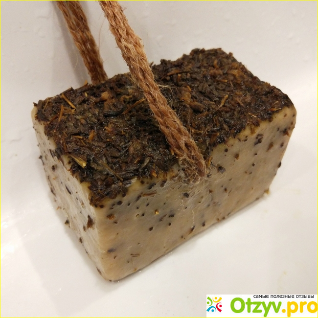 Итак, примиум мыло весом 250 гр обошлось мне в 450 рублей. Представляет оно собой брусок, с прикрепленной внутри ниткой для подвешивания, с одного торца весь срез покрыт сухими лавандовыми цветочками. Внешне конечно выглядит на любителя, скорее напоминает хозяйственное мыло. Но, тот кто ценит естественность, непременно оценит. В составе среди активных компонентов: лаванда, лавровое и оливковые масла. А также эфирные масла кипариса, кокоса и касторки.