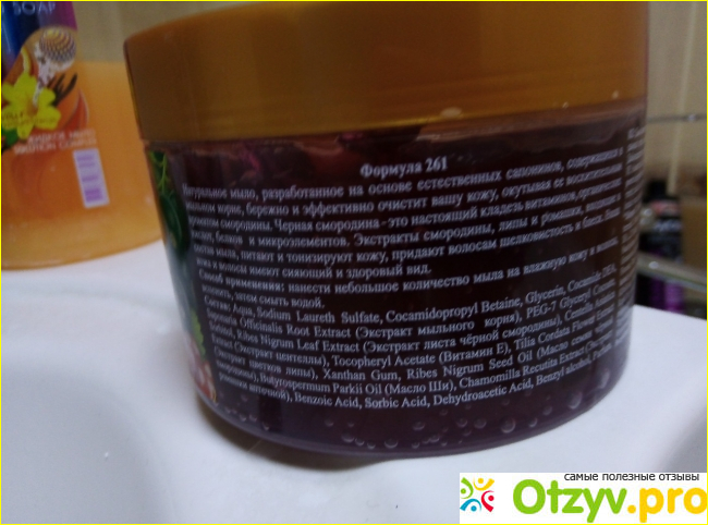 Состав отдельная тема. Сделано на основе экстракта мыльного корня с добавлением листьев и ягод смородины, липы, цветков ромашки, масла. В связи с чем производитель называет товар сосредоточением витаминов и микроэлементов.