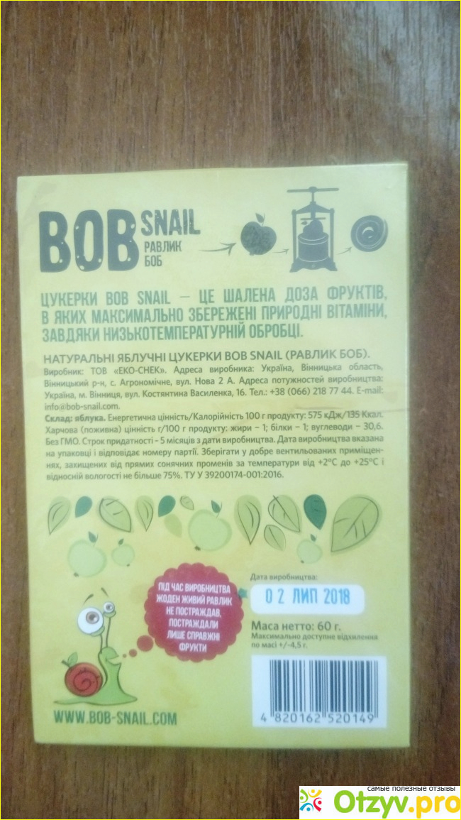 Я всегда думала что конфеты все вредные, но оказывается они бывают и натуральные, без каких либо добавок, только с фруктов. Именно такими являются натуральные яблочные конфеты от производителя Эко Снек "Bob snail". В переводе их название означает "улитка Боб".
