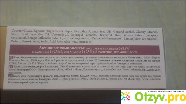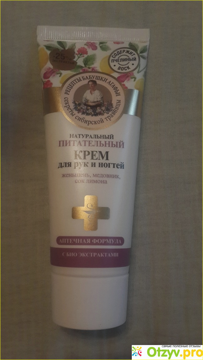 Приветствую всех! Этот отзыв будет посвящен очередному крему для рук. И это натуральный питательный крем для рук и ногтей от бренда Рецепты бабушки Агафьи, а производитель этого бренда, как уже привычно ООО «Первое решение». Крем довольно дешевый, точную цену уже не помню, но до ста рублей цена точно не доходит.