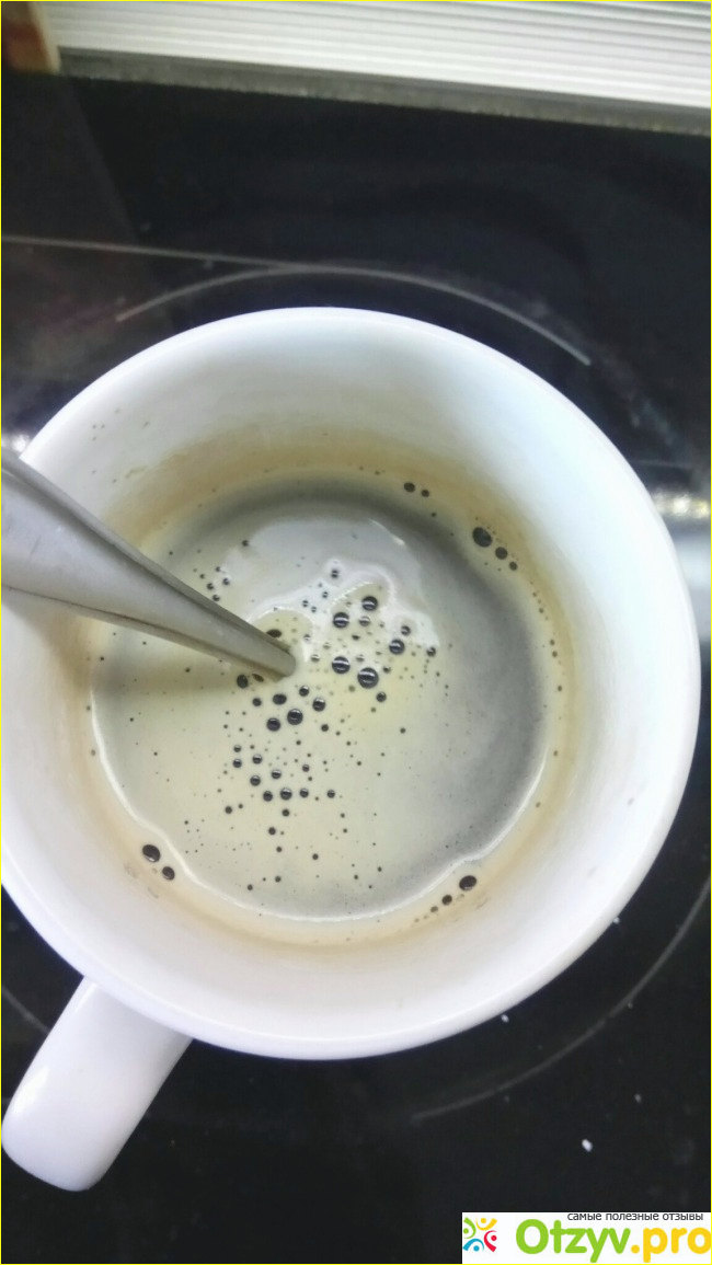 И что же в результате? На картинке и в рекламе пенки целая шапка! А в моей чашке,,, не густо, от силы один миллиметр. И сколько ни мешай - результат, как оказалось, не изменится.