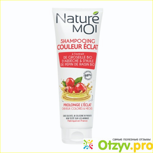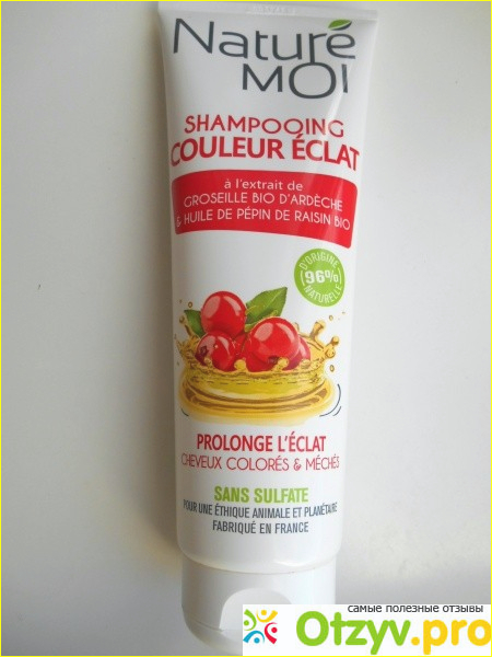 Я стараюсь всегда при покупке обращать внимание на состав. Привлекают внимание с названиями Био. Так как я думаю, что в составе количество химикатов меньше. Ну это я так только думаю, наверняка это не так. Есть несколько видов Nature moi. В моем случае для окрашенных волос. С экстрактом смородины и маслом из косточек винограда.