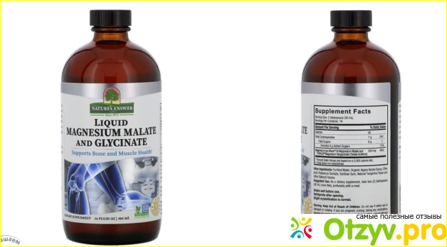 В состав препарата Nature's Answer входят жидкий малат магния и глицинат. Что именно, кроме магния, содержится в составе? Давайте рассмотрим поближе: малат магния – этот вид магния идеально подходит для тех, кто постоянно нервничает, у кого постоянные стрессовые ситуации. Глицинат магния является наиболее доступной биоформулой для человеческого организма, так как он очень хорошо и быстро усваивается желудочно-кишечным трактом. Он помогает успокоить нервную систему, благотворно влияет на желудочно-кишечный тракт, нормализует сон, не оказывает слабительного действия, принимать его необходимо перед отходом ко сну (если есть бессонница). Малат магния помогает бороться с хронической усталостью, устраняет вялость, апатию, немощь, способствует выработке энергии, тонизирует, уменьшает боли в мышечных тканях, снимает судороги, хорошо переносится организмом. Отличное средство для тех, у кого проблемы с желудочно-кишечным трактом, особенно когда страдает кишечник (синдром раздраженного кишечника), оно снимает спазмы, вздутие живота, метеоризм, нарушения стула и так далее.