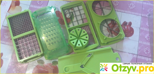 Найсер Дайсер Плюс - дешевая реклама от ти-ви шоп. Идеально нарезанные продукты будут только на картинке. В реальности же продукты либо слишком твердые, что гнут лезвия, либо слишком мягкие, что давятся, а не режутся. Качественными из набора оказались лишь очиститель для кожуры и терка. Не рекомендую.