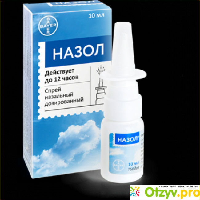 Выпускается "Назол" в форме спрея назального итальянской фирмой "Байер". Упакован в такую милую коробочку голубого цвета. Внутри неё инструкция по применению и флакон белого цвета с лекарственным содержимым в количестве десяти миллилитров.