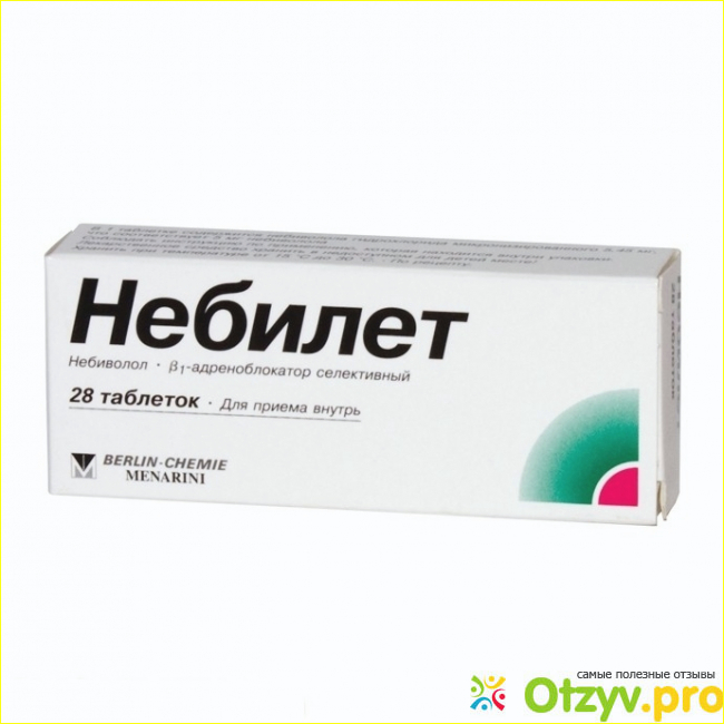 По своему составу Небилет-это бета-адреноблокатор селективного типа. Имеет свойства-гипотензивное, противоаритмическое, антиальгинатное. Лекарство является пролонгированным средство, это означает, что действия одной принятой таблеточки хватает на целые сутки.