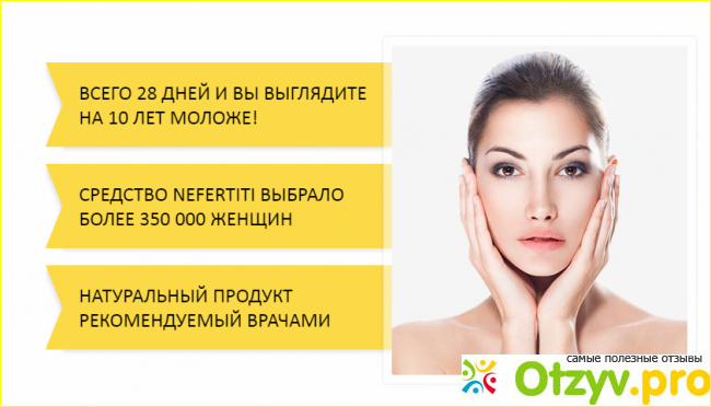 Абсолютно каждая девочка хочет всегда выглядеть безупречно, но иногда, различные признаки усталости и возраста создают массу проблем, и прибавляют возраста. Избавиться от всех этих проблем иногда бывает очень сложно, особенно, если учитывать то, что причины появления этих проблем может быть огромное количество. Помочь справиться с этим вопросом поможет инновационный косметический продукт Nefertiti от мешков и синяков под глазами. Появилось это средство именно благодаря открытию лауреатов Нобелевской премии, которые создали уникальное средство, способное полностью устранить мешки и отечность под глазами, а также запустить процессы регенерации всех слоев кожи. Всего за один курс лечения достигается эффект омоложения, что происходит весьма естественно. Благодаря комплексному воздействию природных компонентов препарата на организм, не ощущается никакого дискомфорта. Это абсолютно сертифицированный и натуральный продукт, который смог показать высокую результативность во время многочисленного тестирования. За максимально короткое время несколько сотен тысяч женщин смогли достойно оценить это эффективное препарат и побороть естественный процесс старения, и об этом говорят многочисленные отзывы.