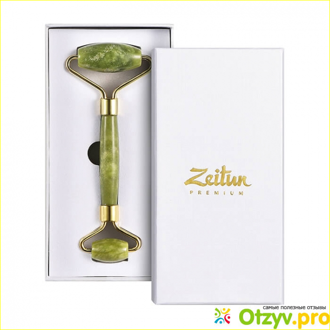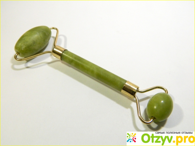 Из доступного нашла нефритовый от Зейтун. Мне очень нравится этот бренд, производящий качественную косметику с восточными нотками. Массажер обошелся мне в 1600 рублей, он выполнен из нефритового камня, на золотой металлической ручке. Роллер многофункциональный и состоит из двух рабочих частей. Верхняя широкая, предназначена для массажа лица и области шеи. Нижняя более маленькая и узкая может использоваться для зоны вокруг глаз. Массаж с этим маленьким помощником позволяет расслабить мышцы лица, избавиться от первых мимических морщин, улучшает цвет кожи и способствует лучшему впитыванию косметических средств.
