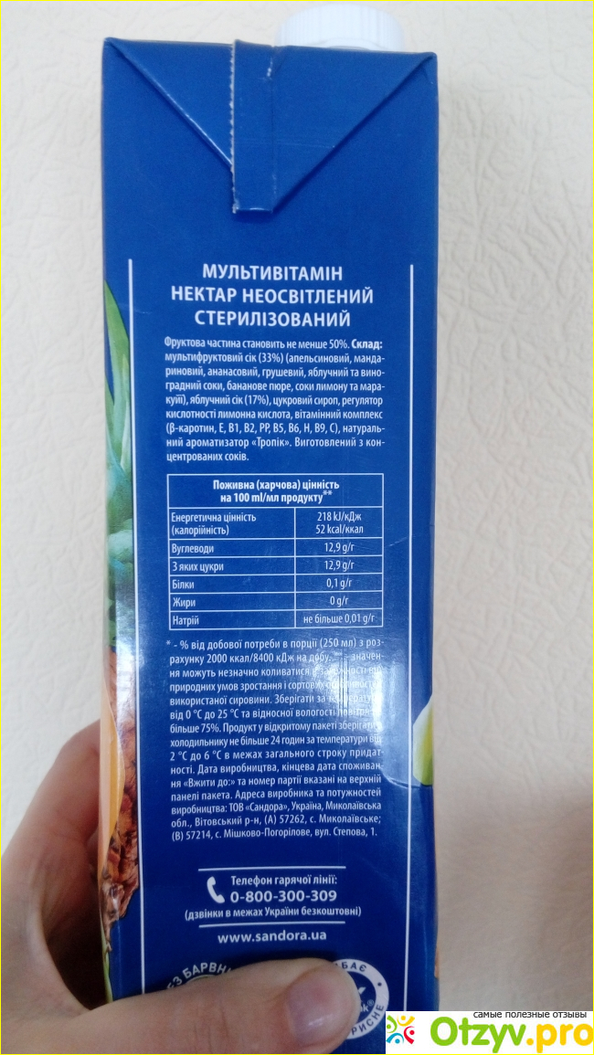 Нектар очень вкусный, имеет приятный аромат тропических фруктов и даже немножко с мякотью, что мне очень нравится. Этот нектар совсем не кислый, за что ещё один плюсик.