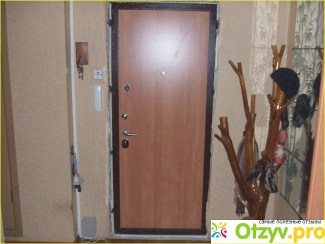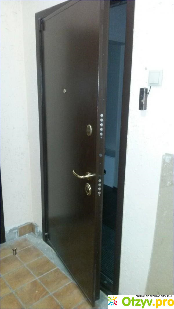 У меня нет претензий к качеству самой конструкции, работе замков, отделке – она снаружи вообще самая простая, чтобы не привлекать внимание, коричневый порошок, внутри панель шпон с фрезеровкой. Причем мы потом вносили изменения по ручкам и внутренней панели, где то через дня 3. На фото дверь сфотографирована через неделю после установки, еще ремонт идет в квартире. По шуму через дверь ничего не слышно, больше через стену слышно. Производителя посоветовали соседи из подъезда, сначала посмотрели у них. Модель и замки, отделку подбирали на выставке Экспострой в Москве. Там - же считали стоимость, правда с замерщиком кое - что добавили, но это наши "хотелки". Потом еще у замерщика были цвета и рисунки отделок. Замерщик приехал на следующий день. Дверь делали 2,5 недели, немного больше чем обещали. Установщики поставили за 3 часа. Грузовой лифт не работал, саму дверь впихнули в пассажирский, коробку поднимали по лестнице - пришлось доплатить. Шум и пыль были, но внутри все сначала обтянули стретчем. Долго вымеряли уровни, щель между дверью и стеной заделали цементом. В проеме двери у нас был пеноблок поэтому делали усиление проема, дверь изначально тяжелая, как нам сказали 150 килограммов. Потом все отрегулировали. Снаружи проем делать не надо, под коробкой ничего не видно, внутри мы сами доделывали. Дому 2 года. Соседи или гости когда открывают, удивляются: дверь наша тяжелая, но из – за их петель дверь открывается легко. Кстати, у них своя слуба экстренного открытия, пока слава Богу не понадобилось!