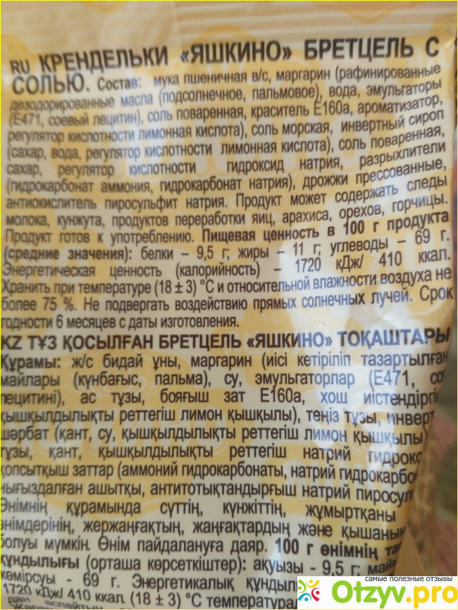 Здесь есть пальмовое масло, красители, ароматизаторы, разрыхлители и много разных ингредиентов. Именно по причине состава я не стану покупать этот продукт часто, хотя вкусовые качества бретцелей мне понравились.